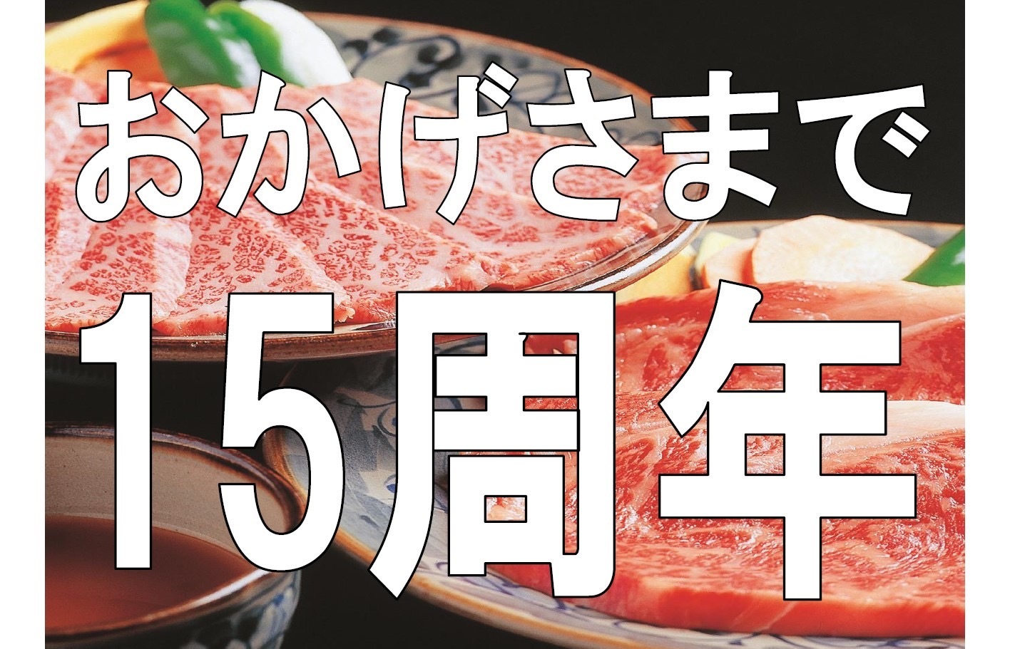 おかげさまで当店は8月1日をもちまして開店15周年を迎えることができます。 15年という節目の年を無事に迎えられましたのも ひとえに皆様方の日頃のご愛顧の賜物と心より感謝いたしております これからも皆様に愛され続けるお店でありますように 開店当初の気持ちを忘れず なお一層の努力を重ね より良いお店作りに務めてまいりたいと思いますので 変わらぬご愛顧の程よろしくお願いいたします。